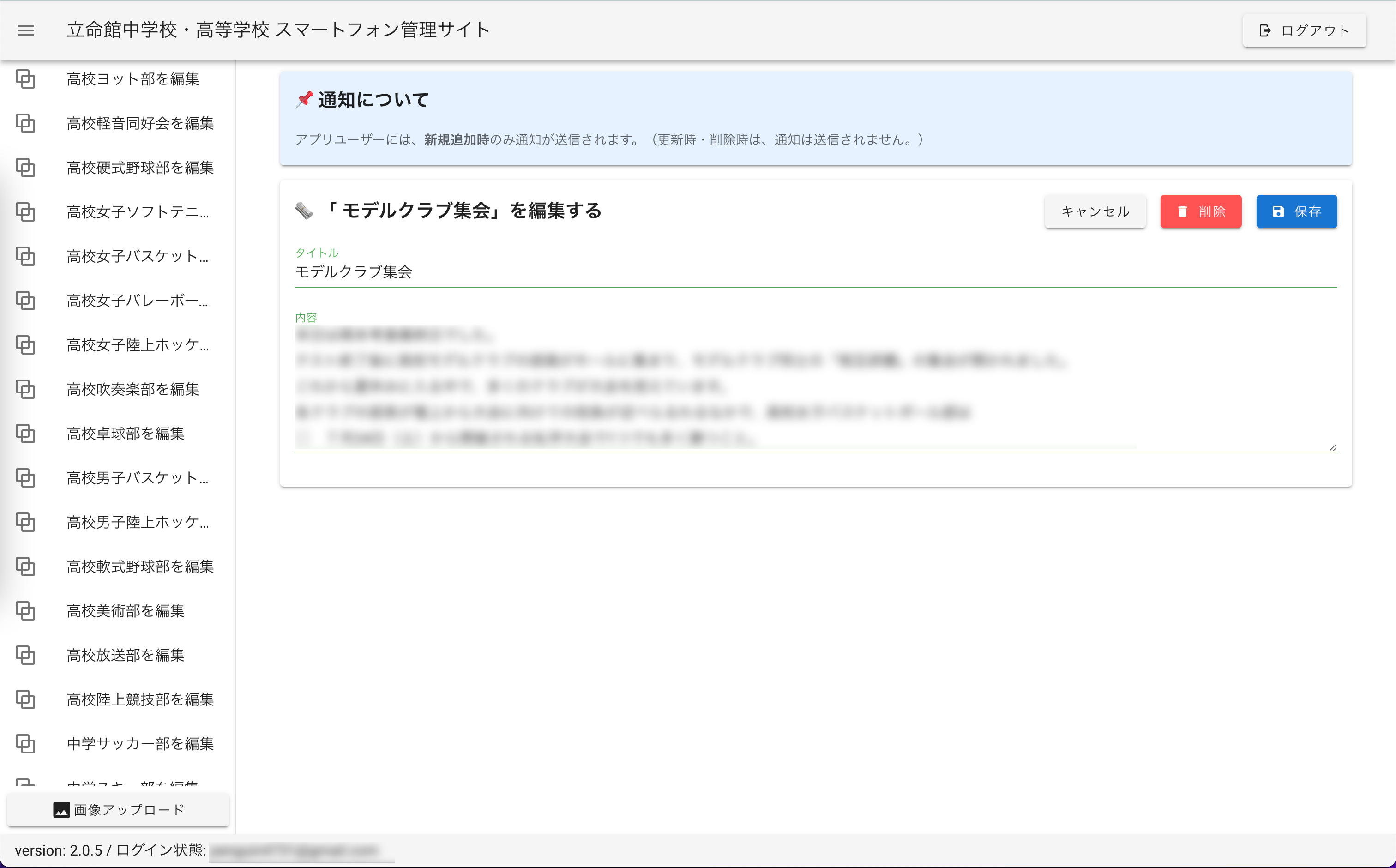 | アクセス制限 | 有(各クラブのクラブ顧問・入試部・限られた人のみ) |