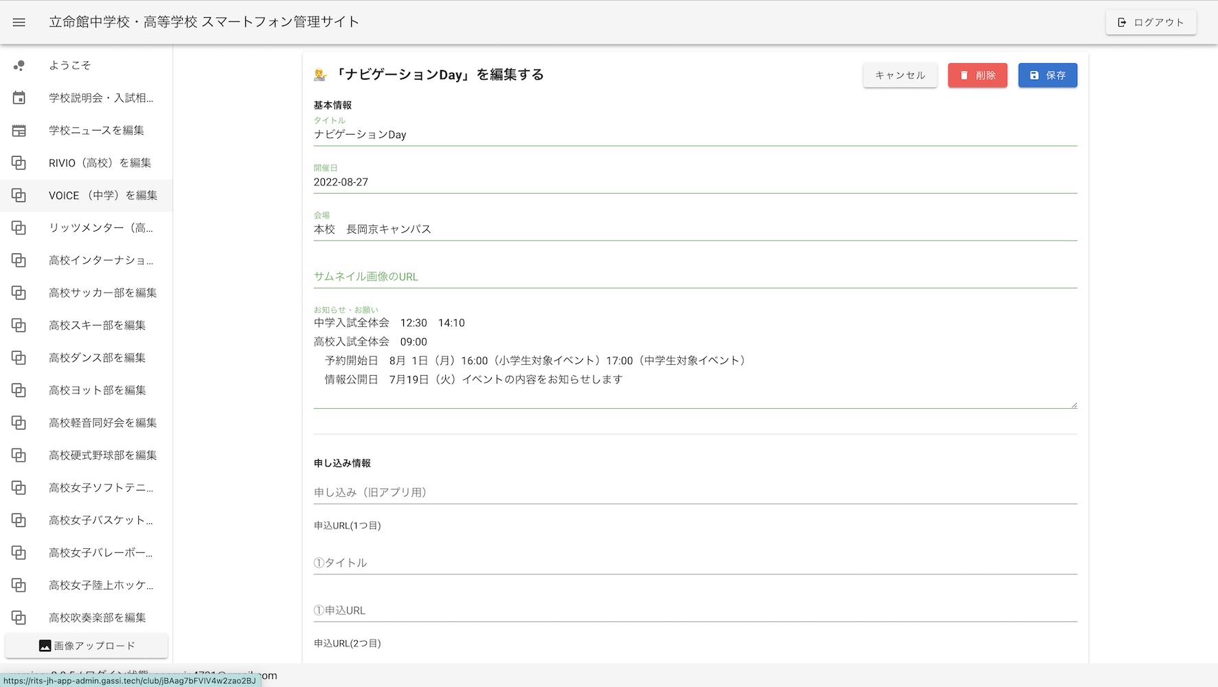 | 対象URL | https://rits-jh-app-admin.gassi.tech/eventから🖋 編集ボタンもしくは新規作成を押したサイト |